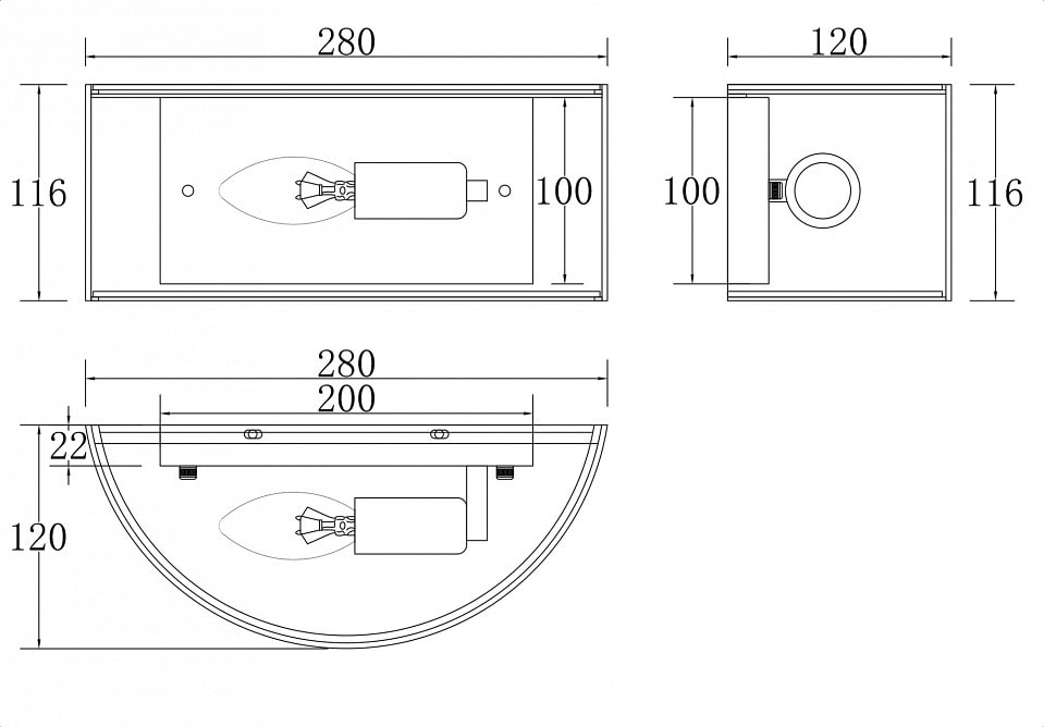 Светильник имеет глубину 280 мм и высоту 120 мм, что делает его компактным и удобным для установки на стену. Его выступ составляет 280 мм, а масса — всего 1.31 кг, что позволяет легко монтировать его в любом помещении. Покупая этот светильник на сайте Pletora.ru, вы получаете качественный продукт от известного бренда Maytoni.