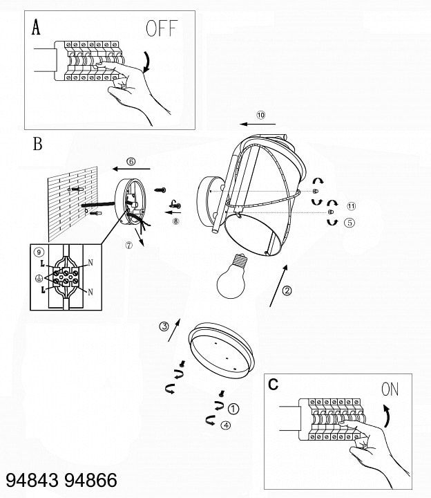 Светильник Eglo Hilburn 94843 оснащен одним плафоном, который позволяет использовать лампы накаливания с максимальной мощностью до 60 Вт. Обратите внимание, что лампы в комплекте не идут, поэтому вы можете выбрать подходящий источник света по своему вкусу. Тип цоколя — E27, что делает его совместимым с большинством стандартных ламп.