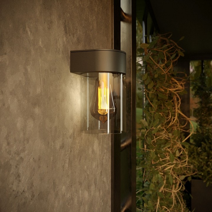 Светильник выполнен в модерн стиле и станет ярким акцентом в вашем дизайне. Его компактные размеры (глубина 130 мм, высота 185 мм) позволяют легко разместить его на стене, а цилиндрическая форма плафона добавляет элегантности. Направление света вниз создает уютную атмосферу, идеально подходящую для вечерних прогулок или отдыха на улице.