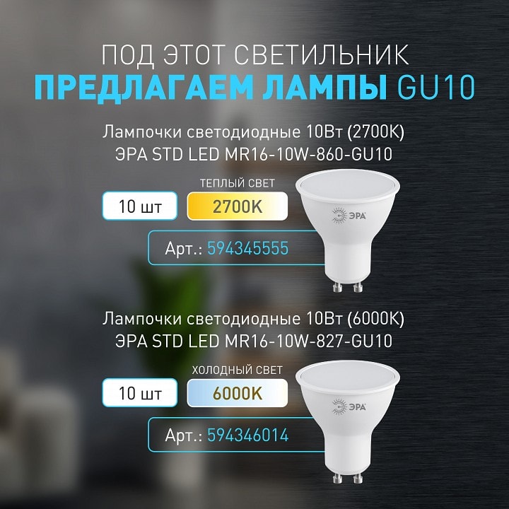 Эра WL37 GR оснащен одним плафоном и поддерживает галогеновые лампы с максимальной мощностью 35 Вт и цоколем GU10. Обратите внимание, что лампы в комплекте отсутствуют, поэтому вы можете выбрать наиболее подходящий вариант освещения для ваших нужд. Направление плафонов может быть любым, что позволяет вам настроить свет в соответствии с вашими предпочтениями.