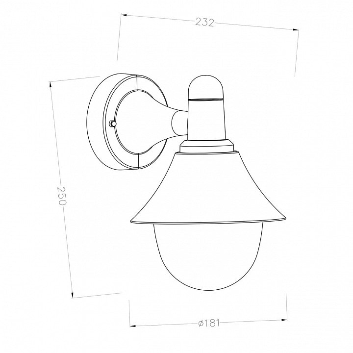 Светильник имеет компактные размеры: высота составляет 250 мм, а глубина и выступ — 232 мм, что позволяет легко разместить его на стене. Он оснащен одним плафоном, который направлен вниз, обеспечивая равномерное и мягкое освещение. Максимальная мощность лампы составляет 60 Вт, а тип цоколя — E27, что дает вам возможность выбрать подходящую лампу для ваших нужд.