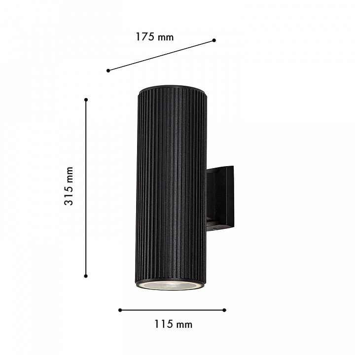 Светильник имеет компактные размеры: высота составляет 315 мм, глубина и выступ — 175 мм, что позволяет легко разместить его на стене. Он оснащен двумя плафонами, которые можно направить вверх или вниз, обеспечивая равномерное освещение. Максимальная мощность лампы составляет 40 Вт, а тип цоколя — E27, что дает возможность использовать различные лампы накаливания.