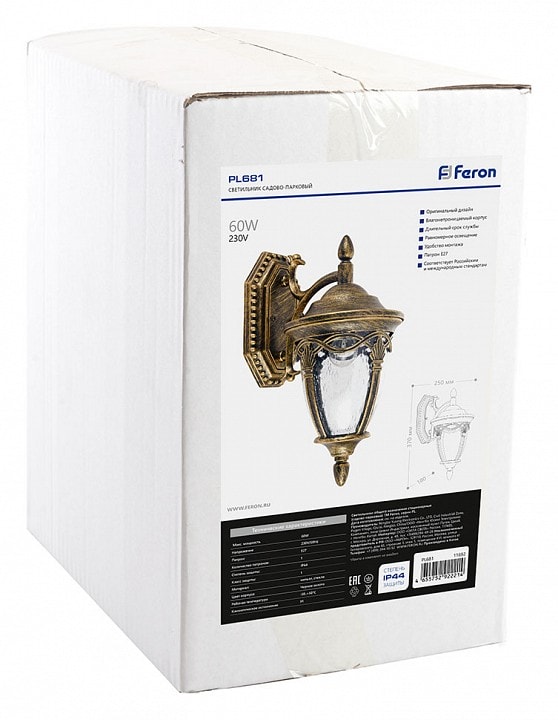Светильник Feron Будапешт 11692 предназначен для установки на стену, а его плафон направлен вниз, что создает мягкое и уютное освещение. Обратите внимание, что лампы в комплекте не идут, поэтому вы можете выбрать подходящую лампу по своему вкусу.