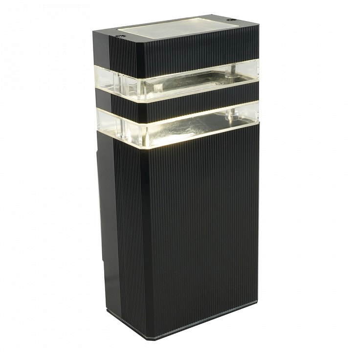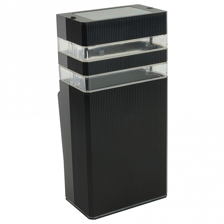Светильник выполнен в техно-стиле и имеет компактные размеры: высота составляет 225 мм, а глубина и выступ — 110 мм. Он предназначен для установки на стену и способен осветить площадь до 7.5 м², что делает его идеальным для освещения улицы или террасы.