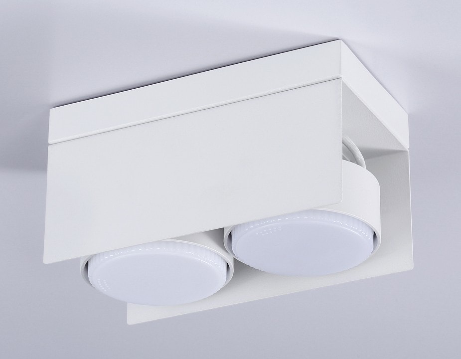 С двумя плафонами, выполненными в форме цилиндров, светильник обеспечивает равномерное распределение света, создавая комфортное освещение на площади до 12 м². Максимальная мощность лампы составляет 12 Вт, что позволяет использовать светодиодные лампы с цоколем GX53, обеспечивая экономию электроэнергии и долговечность.