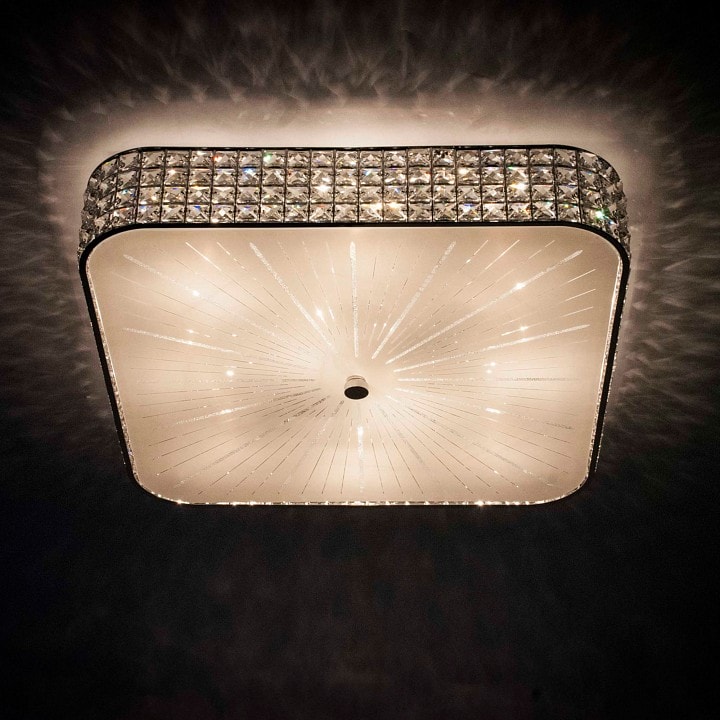 Размер упаковки светильника составляет 640x640x180 мм, что делает его удобным для транспортировки и хранения. Общая мощность освещения достигает 600 Вт, что позволяет осветить значительную площадь вашей комнаты.