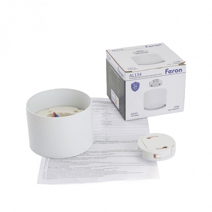Светильник работает на напряжении 230 В и поддерживает максимальную мощность лампы до 15 Вт. Обратите внимание, что лампы в комплекте не предусмотрены, поэтому вы можете выбрать подходящую светодиодную лампу с цоколем GX53 по вашему вкусу. Это дает возможность экспериментировать с яркостью и цветовой температурой освещения.
