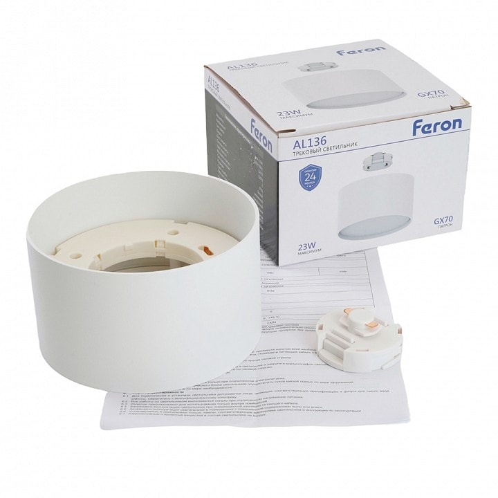 Светильник Feron AL136 имеет степень пылевлагозащиты IP 20, что обеспечивает его надежность и долговечность в эксплуатации. Для установки потребуется однофазный трек, который легко монтируется и позволяет быстро подключить светильник к электросети с напряжением 230 В.