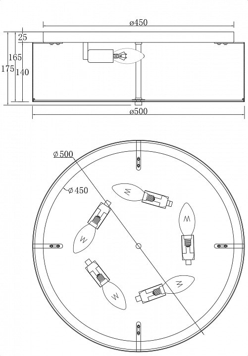 С диаметром 500 мм и высотой 175 мм, светильник Ripple привлекает внимание своим элегантным и минималистичным дизайном. Он оснащен одним плафоном, который направляет свет вниз, обеспечивая равномерное освещение пространства. Максимальная мощность лампы составляет 40 Вт, а тип цоколя - E14, что позволяет использовать различные лампы накаливания для достижения желаемого эффекта освещения.
