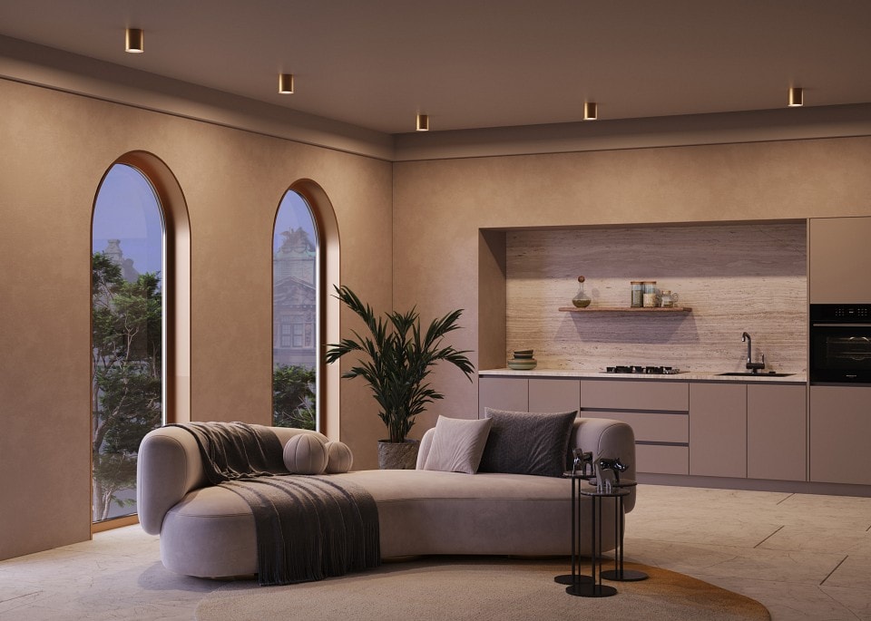 С диаметром всего 99 мм и высотой 110 мм, светильник легко впишется в любой интерьер, не занимая много места. Он предназначен для установки на потолок и обеспечивает направленное освещение вниз, что идеально подходит для создания уютной атмосферы в вашей гостиной.