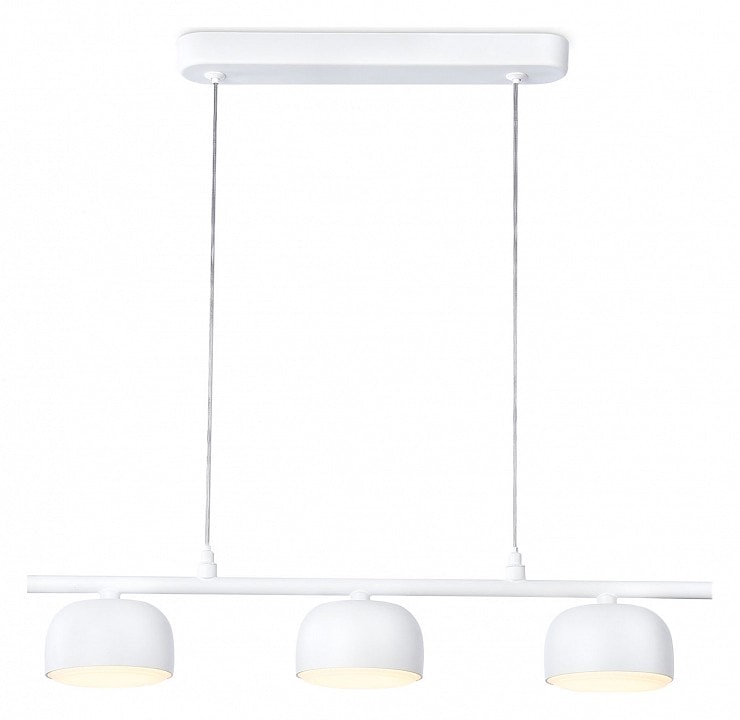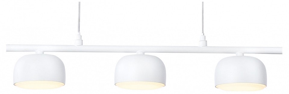 Светильник оснащен тремя плафонами в форме прямого колокола, которые направлены вниз, что позволяет равномерно распределять свет по всей площади. Максимальная мощность лампы составляет 12 Вт, а общая мощность достигает 36 Вт, что делает его подходящим для освещения помещений площадью до 18 м².