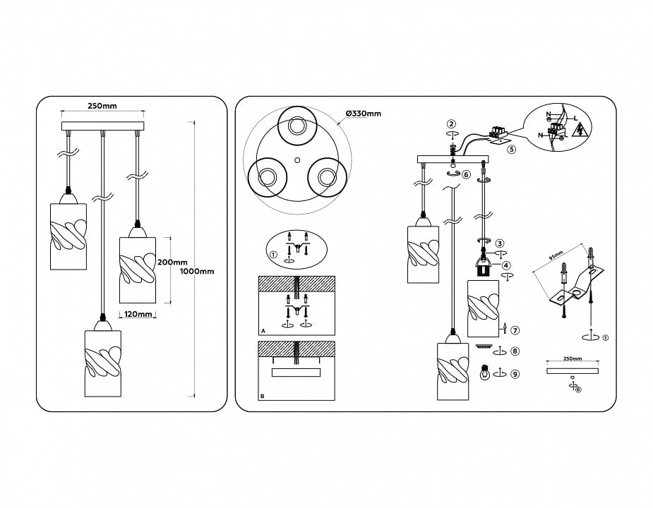 Светильник оснащен тремя плафонами, направленными вниз, что позволяет равномерно распределять свет по всей площади. Максимальная мощность лампы составляет 60 Вт, а общее количество ламп — 3, что обеспечивает достаточное освещение для комфортного пребывания на кухне. Обратите внимание, что лампы в комплект не входят, что дает вам возможность выбрать именно те лампы, которые подходят вашему интерьеру.