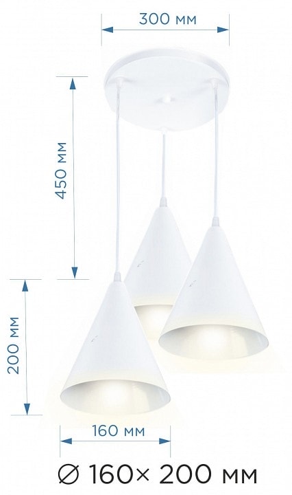 С диаметром 300 мм и высотой 450 мм, светильник Ляфамий обеспечивает равномерное освещение благодаря трем плафонам, направленным вниз. Каждый плафон имеет конусообразную круглую форму, что придаёт изделию уникальный и современный вид. Максимальная мощность лампы составляет 40 Вт, а общее количество ламп — 3, что позволяет достичь общей мощности в 120 Вт. Обратите внимание, что лампы в комплекте отсутствуют, поэтому вы можете выбрать подходящие лампы накаливания с цоколем E14 по вашему вкусу.