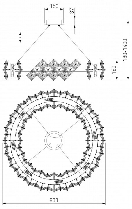 Размер упаковки составляет 811x808x181 мм, что делает его удобным для транспортировки и установки. Не упустите возможность преобразить ваше пространство с помощью этого великолепного светильника!