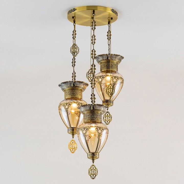 Светильник имеет диаметр 300 мм и высоту 450 мм, что делает его идеальным для размещения на потолке. Он оснащен тремя плафонами, направленными вниз, что обеспечивает равномерное и комфортное освещение. Максимальная мощность лампы составляет 75 Вт, а общее количество ламп – 3. Обратите внимание, что лампы в комплекте отсутствуют, поэтому вы можете выбрать подходящие лампы с цоколем E27 по вашему вкусу.