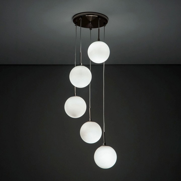 Светильник имеет диаметр 360 мм и состоит из 5 плафонов, которые направлены вниз, обеспечивая равномерное и мягкое освещение. Максимальная мощность лампы составляет 40 Вт, а общее количество ламп – 5. Обратите внимание, что лампы в комплекте отсутствуют, поэтому вы можете выбрать подходящие по вашему вкусу. Рекомендуем использовать лампы с цоколем E14 для достижения наилучшего эффекта.