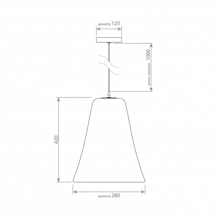 Светильник оснащен одним плафоном в форме расходящегося колокола, который направляет свет вниз, обеспечивая равномерное освещение пространства. Максимальная мощность лампы составляет 40 Вт, что позволяет использовать лампы накаливания с цоколем E27, обеспечивая теплый и комфортный свет.