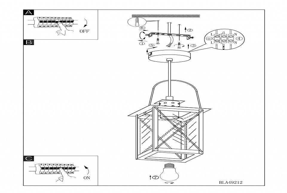 Eglo Donmington 49212 оснащен одним плафоном, который выполнен в форме призмы прямоугольной. Для работы светильника требуется лампа накаливания с цоколем E27, максимальная мощность которой составляет 60 Вт. Обратите внимание, что лампы в комплекте не идут, поэтому вы можете выбрать подходящий источник света в зависимости от ваших предпочтений.