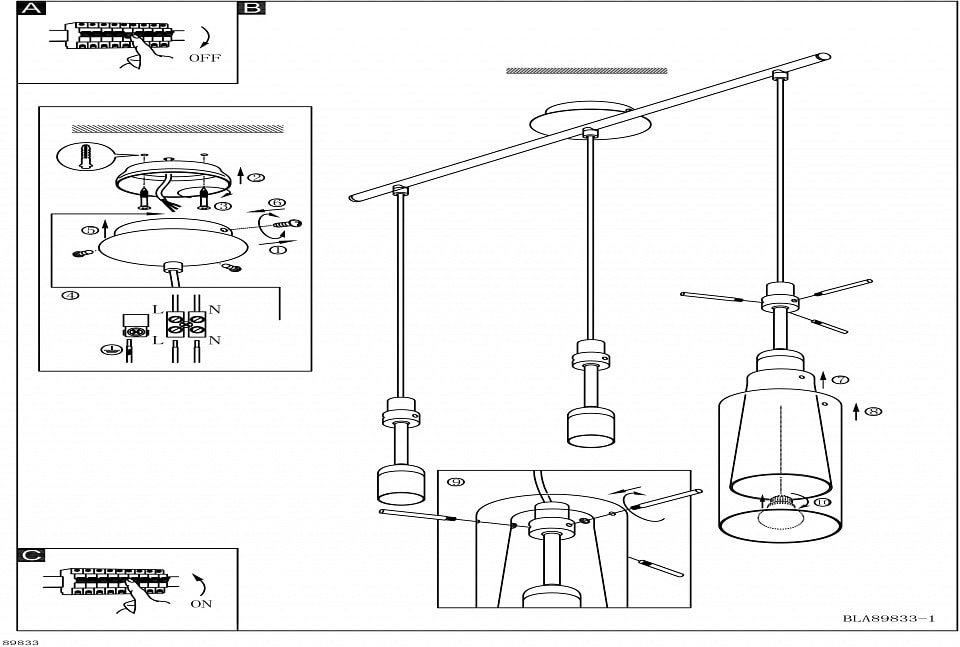 С высотой 1100 мм и тремя плафонами, направленными вниз, светильник обеспечивает равномерное освещение, создавая комфортные условия для приготовления пищи и семейных ужинов. Максимальная мощность лампы составляет 60 Вт, что позволяет использовать лампы накаливания с цоколем E27, обеспечивая яркий и теплый свет.