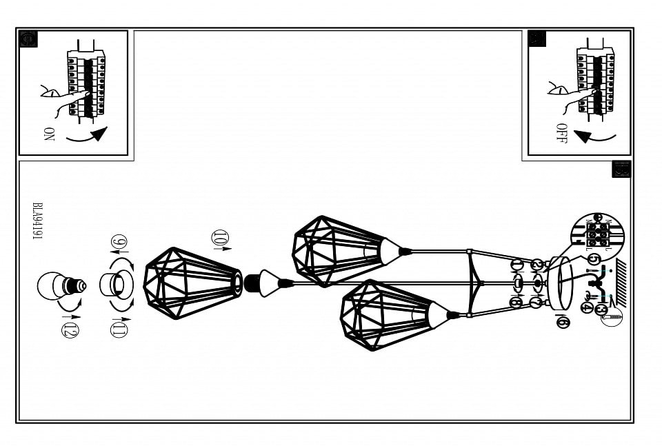 С диаметром 310 мм и высотой 1100 мм, светильник идеально подходит для установки на потолке, обеспечивая равномерное освещение в вашем помещении. Он оснащен тремя плафонами, направленными вниз, что позволяет создать яркий и комфортный световой поток. Максимальная мощность лампы составляет 60 Вт, а тип цоколя - E27, что дает вам возможность выбрать лампы по вашему вкусу.