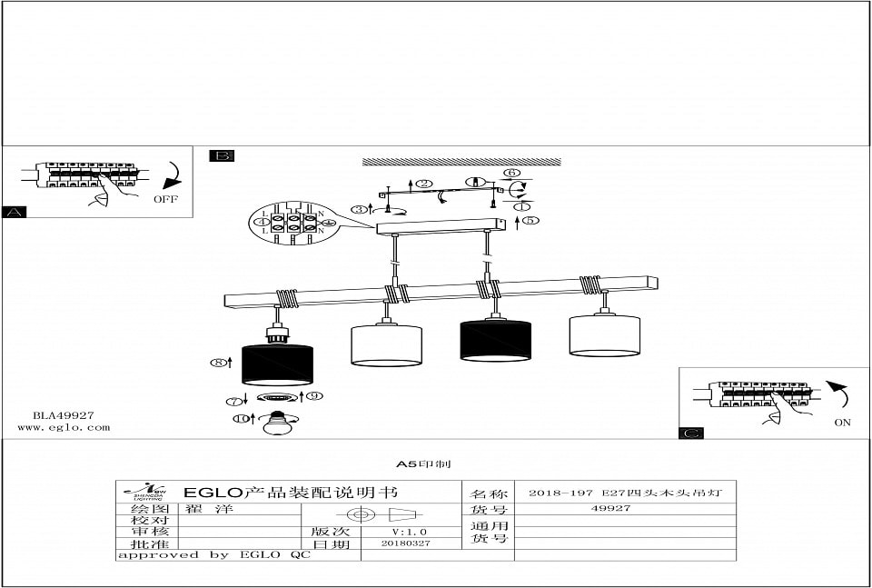 С высотой 1100 мм и весом 3.1 кг, светильник легко устанавливается на потолок и обеспечивает равномерное освещение благодаря четырем плафонам, направленным вверх и вниз. Каждый плафон имеет стандартный цоколь E27 и поддерживает лампы мощностью до 60 Вт, что позволяет вам выбрать подходящие источники света в зависимости от ваших предпочтений.