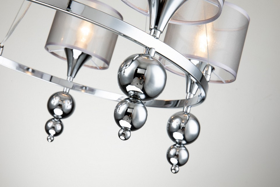 С диаметром 630 мм и высотой 630 мм, светильник идеально подходит для потолочного размещения. Он оснащен пятью плафонами, которые можно направить как вверх, так и вниз, что позволяет создать разнообразные световые эффекты. Обратите внимание, что лампы в комплект не входят, но максимальная мощность каждой из них составляет 40 Вт, что дает возможность выбрать освещение по вашему вкусу.