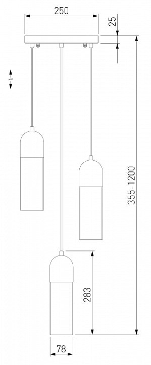 С диаметром 250 мм и высотой 355 мм, светильник имеет три плафона, направленных вниз, что обеспечивает равномерное освещение. Каждый плафон выполнен в форме прямого колокола, что придаёт изделию уникальный и стильный вид. Максимальная мощность лампы составляет 40 Вт, а общее количество ламп — 3, что позволяет достичь общей мощности в 120 Вт. Обратите внимание, что лампы в комплекте отсутствуют, поэтому вы можете выбрать подходящие лампы с цоколем E27 по вашему вкусу.