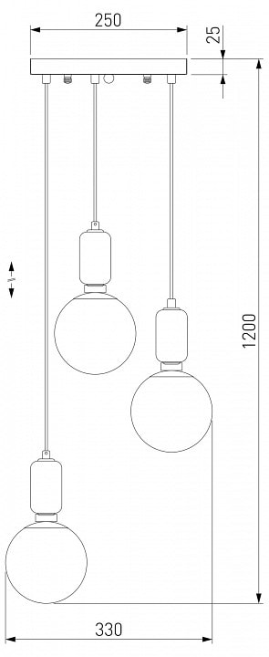 С диаметром 300 мм и тремя плафонами, светильник обеспечивает равномерное освещение, создавая уютную атмосферу. Направление плафонов вниз позволяет сосредоточить свет именно там, где он нужен, что особенно удобно для освещения рабочих зон на кухне. Максимальная мощность лампы составляет 60 Вт, а тип цоколя E27 позволяет использовать различные лампы, включая энергосберегающие и светодиодные.