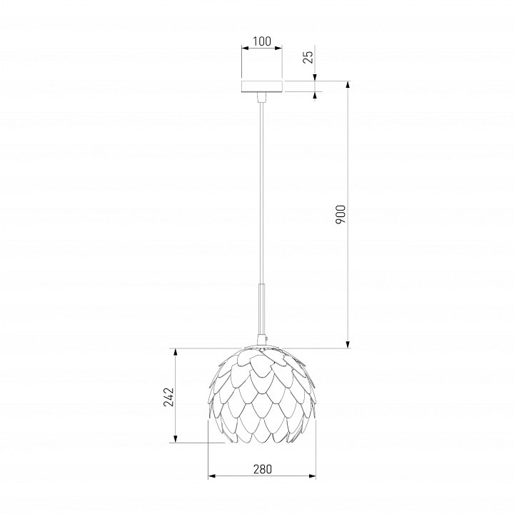 Светильник имеет диаметр 280 мм и высоту 1200 мм, что делает его идеальным для установки на потолке. Он оснащен одним плафоном, который направлен вниз, обеспечивая равномерное и мягкое освещение. Максимальная мощность лампы составляет 60 Вт, а тип цоколя – E27. Обратите внимание, что лампы в комплекте не идут, что дает вам возможность выбрать освещение по своему вкусу.