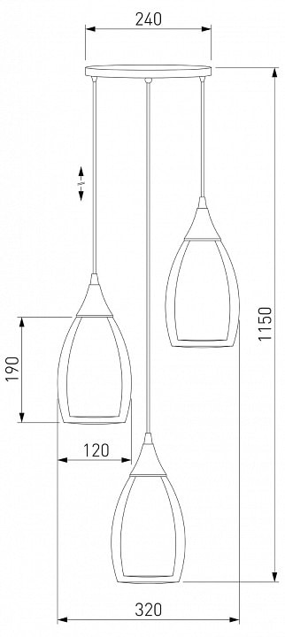 С диаметром 320 мм и высотой 300 мм, светильник прекрасно впишется в пространство, обеспечивая освещение площадью до 22.5 м². Он оснащен тремя плафонами, направленными вниз, что позволяет равномерно распределять свет по комнате. Максимальная мощность лампы составляет 15 Вт на каждый плафон, что делает его экономичным решением для вашего дома.