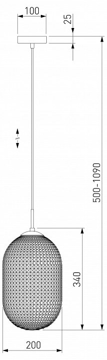 С диаметром 200 мм и высотой 500 мм, этот светильник идеально подходит для размещения на потолке. Его один плафон направлен вниз, что обеспечивает равномерное освещение рабочей зоны. Максимальная мощность лампы составляет 60 Вт, а тип цоколя - E27, что позволяет использовать различные лампы накаливания для достижения желаемого уровня яркости.