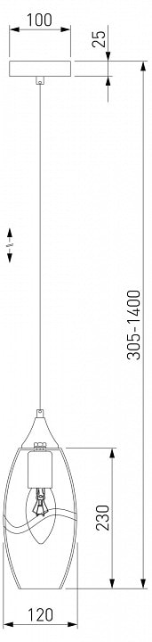 С диаметром 120 мм и высотой 360 мм, светильник имеет один плафон, который направлен вниз, обеспечивая равномерное освещение. Максимальная мощность лампы составляет 40 Вт, а тип цоколя - E27, что позволяет использовать различные лампы накаливания. Обратите внимание, что лампы в комплекте не предусмотрены, поэтому вы можете выбрать подходящий вариант по своему вкусу.