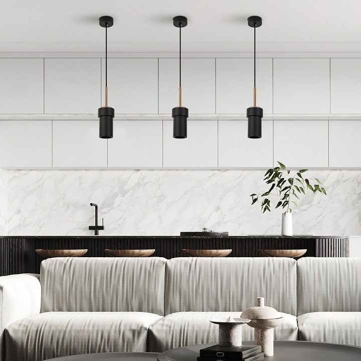 С диаметром всего 85 мм и высотой 300 мм, этот светильник идеально впишется в любое пространство, добавляя ему элегантности и современности. Он предназначен для установки на потолок и направляет свет вниз, что делает его идеальным выбором для освещения кухонных столов или барных стоек.