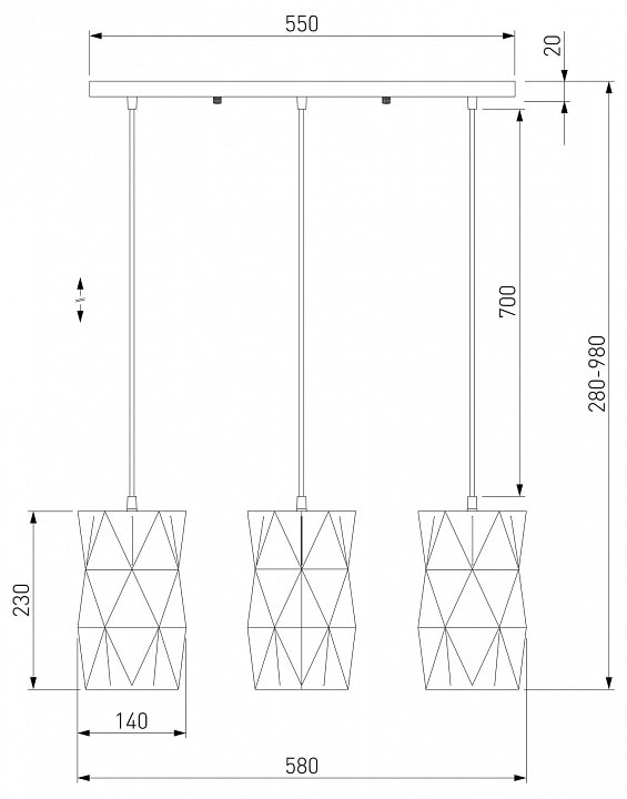 Размер упаковки составляет 564x213x327 мм, что делает его удобным для транспортировки и хранения. Не упустите возможность преобразить ваш интерьер с помощью этого элегантного подвесного светильника!