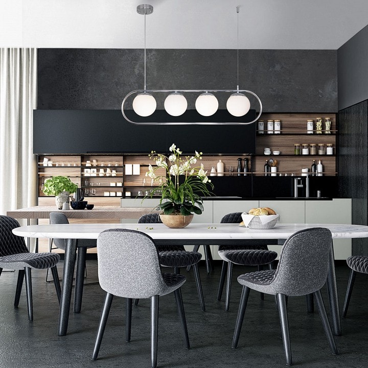 С высотой всего 260 мм и четырьмя плафонами, направленными вниз, этот светильник идеально подходит для освещения больших пространств. Максимальная мощность лампы составляет 60 Вт, что позволяет использовать его как основное освещение в комнате. Общее количество ламп – 4, что обеспечивает равномерное распределение света.