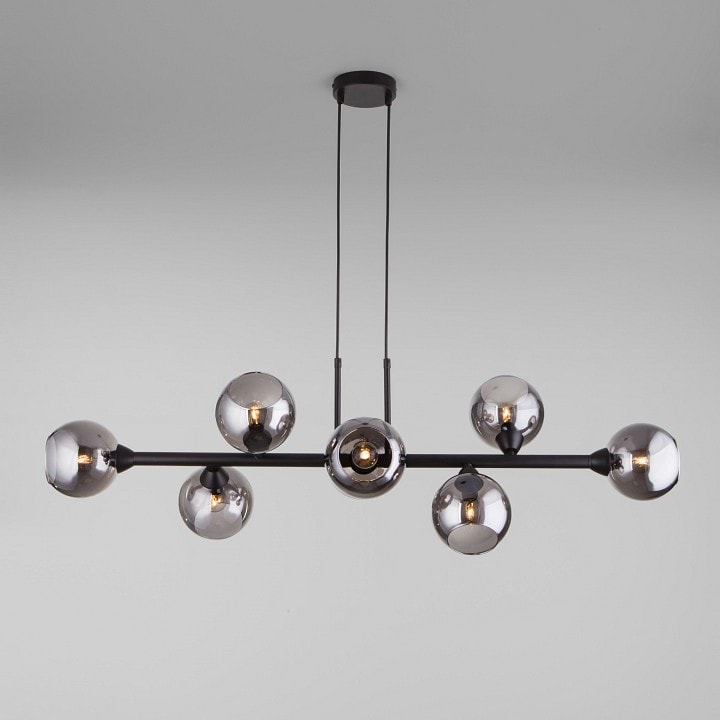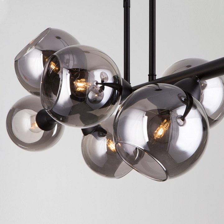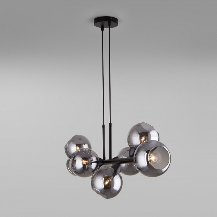 С высотой 420 мм и весом 3.7 кг, этот светильник легко устанавливается на потолок и обеспечивает равномерное освещение благодаря восьми плафонам, направленным в стороны и вниз. Каждый плафон имеет сферическую форму, что добавляет изысканности и оригинальности в дизайн. Обратите внимание, что лампы в комплекте отсутствуют, но максимальная мощность каждой лампы составляет 40 Вт, что позволяет использовать различные типы ламп с цоколем E14.