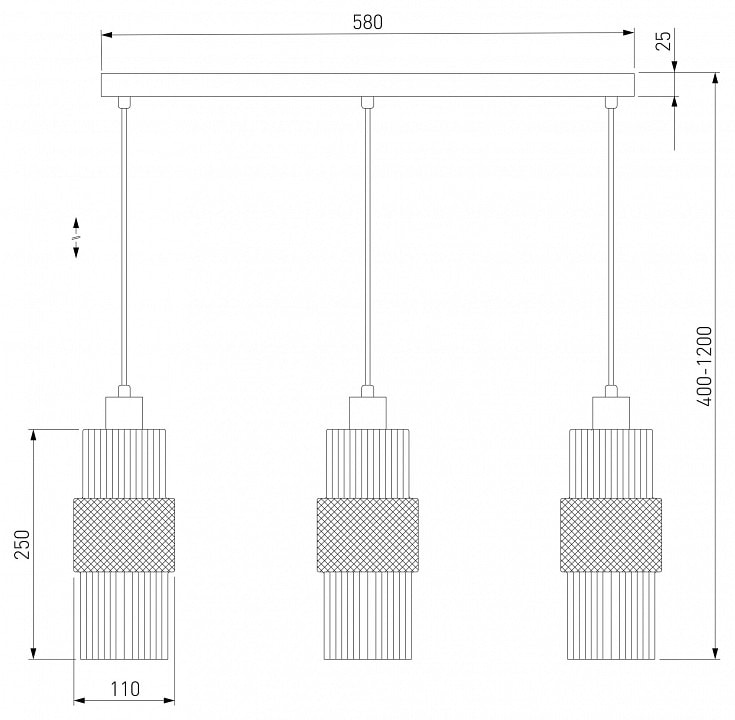 Светильник имеет высоту 400 мм и состоит из трех цилиндрических плафонов, направленных вниз, что обеспечивает равномерное распределение света. Максимальная мощность лампы составляет 40 Вт, а общее количество ламп — 3, что позволяет достичь общей мощности в 120 Вт. Обратите внимание, что лампы в комплекте отсутствуют, поэтому вы можете выбрать подходящие лампы с цоколем E27 по вашему вкусу.