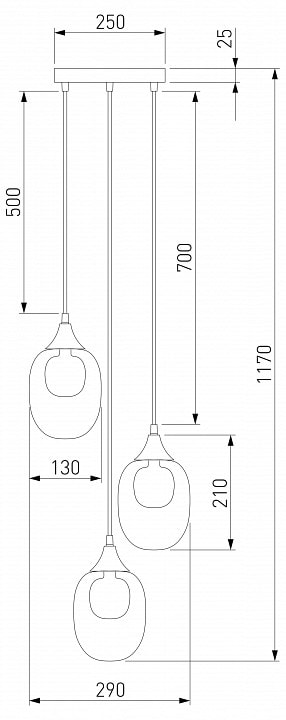 Светильник имеет диаметр 330 мм и высоту 1160 мм, что делает его подходящим для различных интерьеров. Он оснащен тремя плафонами, направленными вниз, что позволяет равномерно распределять свет по всему помещению. Максимальная мощность лампы составляет 25 Вт на каждый плафон, что в сумме дает 75 Вт общей мощности. Обратите внимание, что лампы в комплекте отсутствуют, но вы можете выбрать галогеновые лампы с цоколем G9 по вашему вкусу.