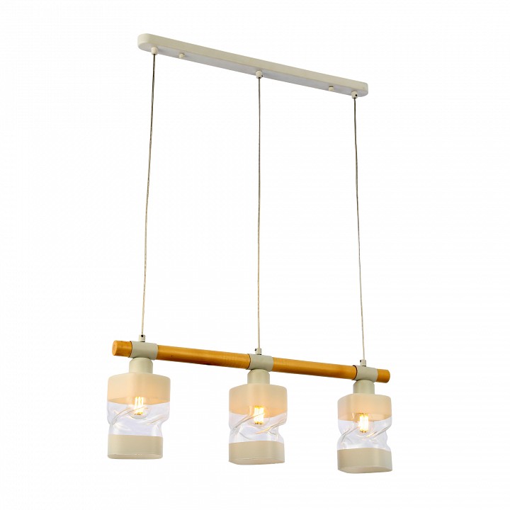 Светильник имеет высоту 205 мм и состоит из трех плафонов, которые направлены вниз, обеспечивая равномерное и мягкое освещение. Каждый плафон выполнен в форме квадратной призмы, что добавляет оригинальности и современности в дизайн. Максимальная мощность лампы составляет 60 Вт, а общее количество ламп — 3, что позволяет достичь общей мощности в 180 Вт. Обратите внимание, что лампы в комплект не входят, поэтому вы можете выбрать подходящие лампы с цоколем E27 по вашему вкусу.