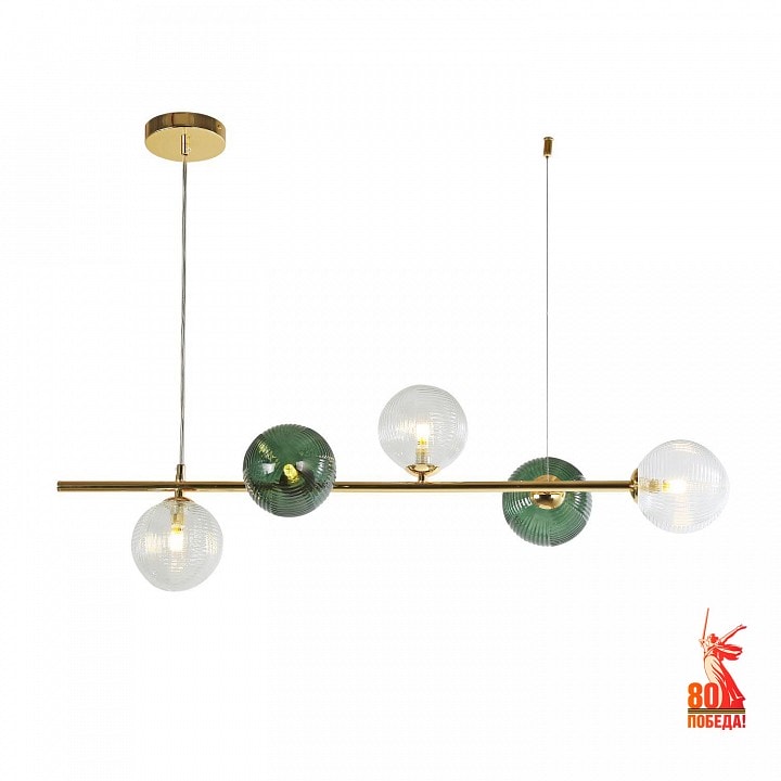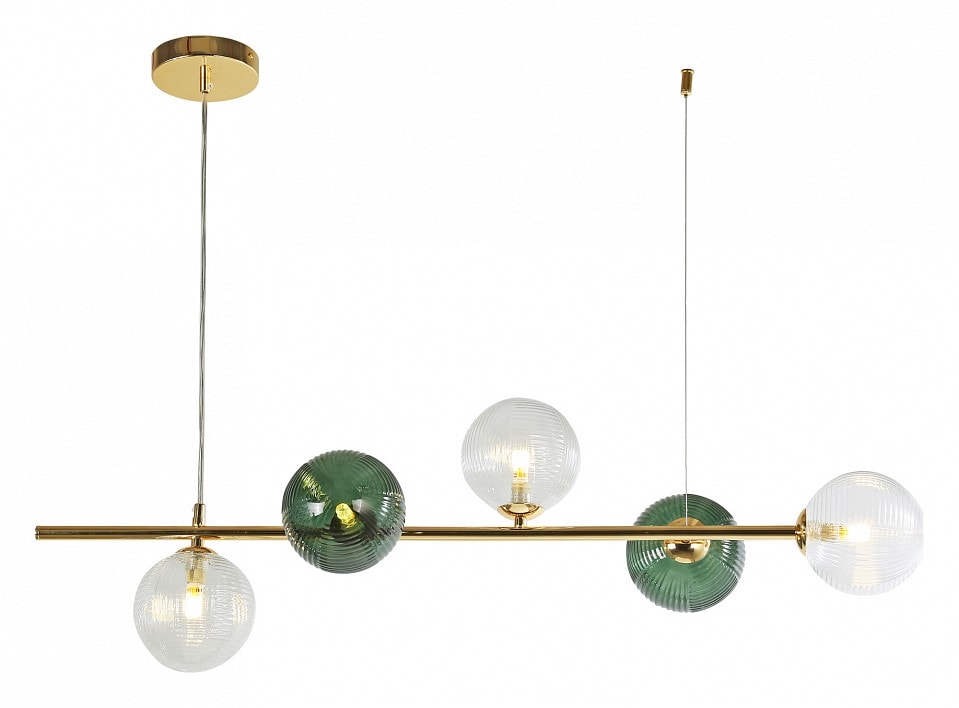 Светильник выполнен в модерн стиле и имеет артикул FV_4035-5P. Его высота составляет 300 мм, а масса — 1.9 кг, что позволяет легко установить его на потолке. Подвесной светильник оснащен пятью плафонами, которые направлены в стороны, вверх и вниз, обеспечивая равномерное распределение света по всей площади освещения до 12.5 м².