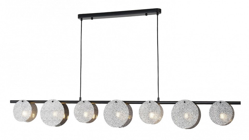 Светильник F-promo Pagos 4104-7P выполнен в стиле модерн и оснащен семью плафонами, которые направлены вниз, обеспечивая равномерное и мягкое освещение. Максимальная мощность каждой лампы составляет 40 Вт, что позволяет использовать галогеновые лампы с цоколем G9. Обратите внимание, что лампы в комплект не входят, что дает вам возможность выбрать именно те лампы, которые подойдут вам по стилю и яркости.