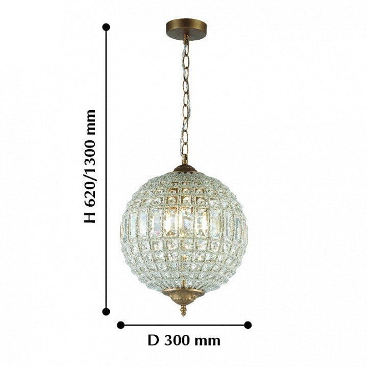 С диаметром 300 мм и высотой 620 мм, светильник имеет три плафона, которые направлены вниз, обеспечивая равномерное и мягкое освещение. Максимальная мощность лампы составляет 40 Вт, а тип цоколя - E14, что позволяет использовать различные лампы накаливания для достижения желаемого эффекта освещения. Обратите внимание, что лампы в комплекте не поставляются, что дает вам возможность выбрать именно те лампы, которые подойдут вашему стилю.