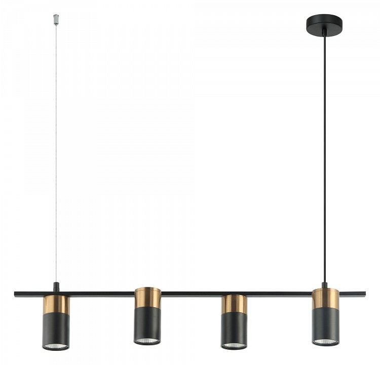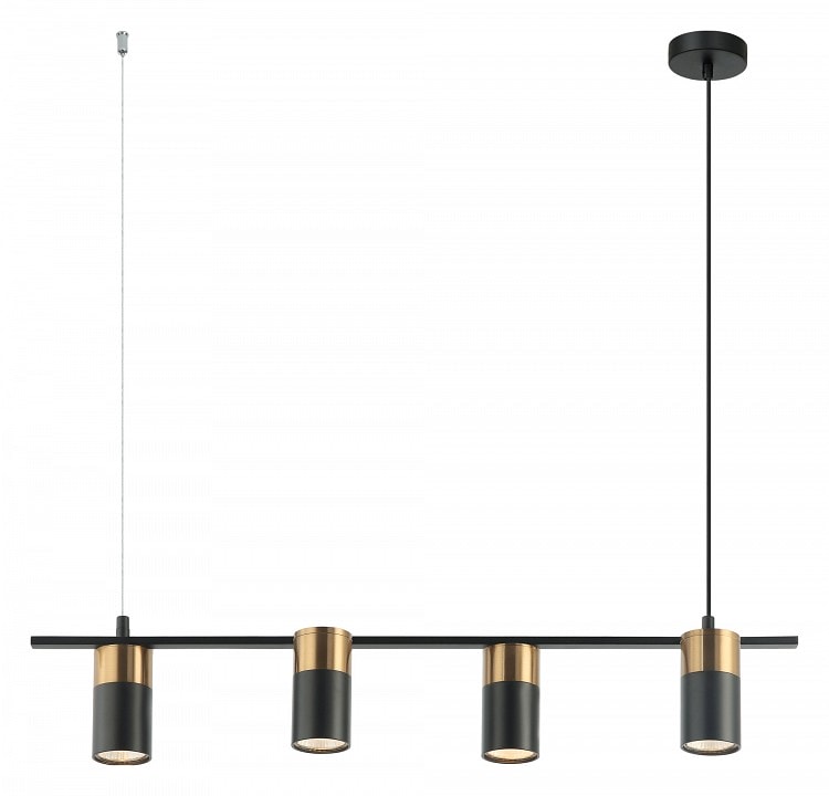 С высотой всего 140 мм и четырьмя плафонами, светильник обеспечивает равномерное освещение, направляя свет вниз. Каждый плафон выполнен в форме цилиндра, что добавляет изысканности и современности в интерьер. В комплект входят галогеновые лампы с цоколем GU10, каждая мощностью до 35 Вт, что позволяет достичь общей мощности в 140 Вт.