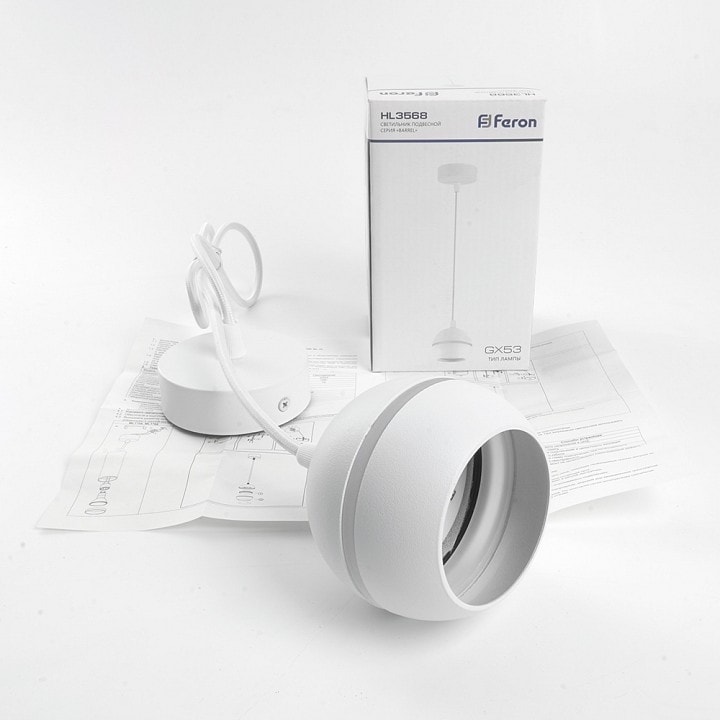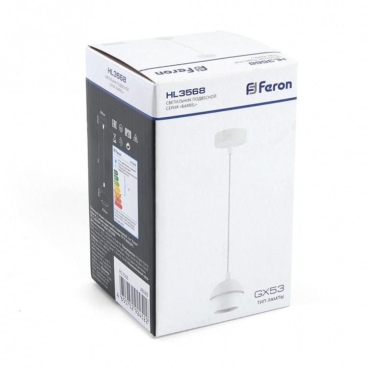 Подвесной светильник Feron HL3568 работает с светодиодными лампами типа GX53, максимальная мощность которых составляет 15 Вт. Обратите внимание, что лампы в комплект не входят, что дает вам возможность выбрать именно тот источник света, который подходит вам по стилю и яркости.