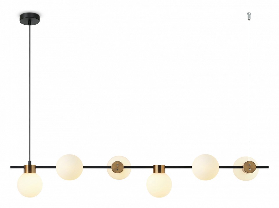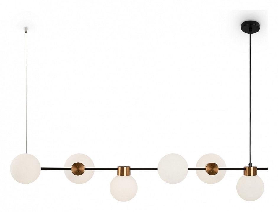 Светильник выполнен в стиле модерн и имеет высоту 200 мм, что позволяет ему гармонично вписаться в пространство. Он оснащен шестью плафонами, которые направлены в стороны и вниз, обеспечивая равномерное и яркое освещение. Максимальная мощность лампы составляет 25 Вт, а общая мощность достигает 150 Вт, что позволяет использовать его для освещения больших кухонных пространств.
