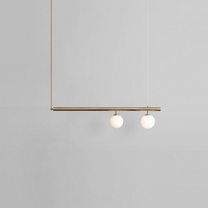 Светильник имеет высоту 850 мм и состоит из двух плафонов, направленных вниз, что обеспечивает равномерное освещение пространства. Каждый плафон имеет сферическую форму, что придает изделию оригинальный вид. Максимальная мощность лампы составляет 20 Вт, а общее количество ламп — 2, что позволяет добиться необходимой яркости и комфорта в вашем помещении.