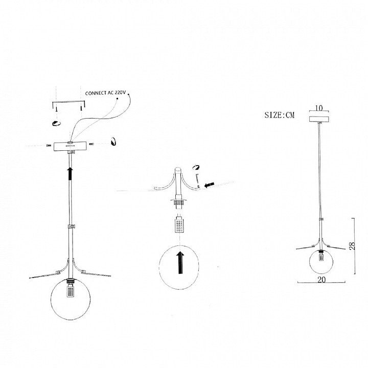 С диаметром 200 мм и высотой 220 мм, светильник идеально подходит для размещения на потолке, обеспечивая равномерное освещение. Его сферическая форма плафона добавляет нотку изысканности, а направленность света вниз создает мягкое и комфортное освещение для вашего пространства.