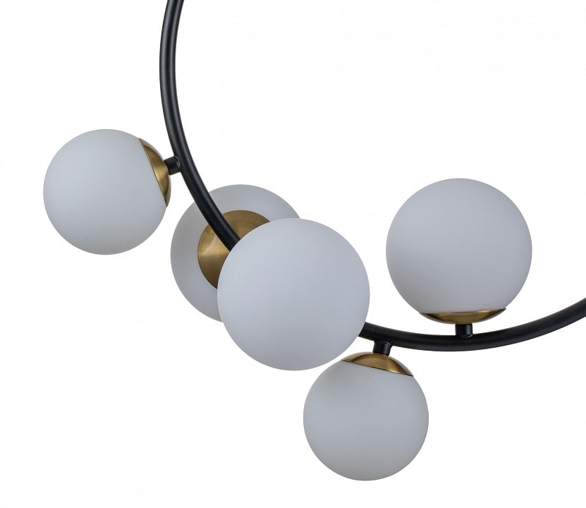 С высотой 573 мм и весом 3.5 кг, светильник легко устанавливается на потолок, а его шесть плафонов, выполненных в форме сферы, обеспечивают равномерное распределение света в помещении. Направление плафонов можно регулировать: они светят в стороны, вниз и вверх, что позволяет создать уникальную игру света и тени.