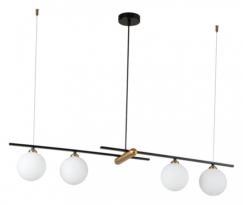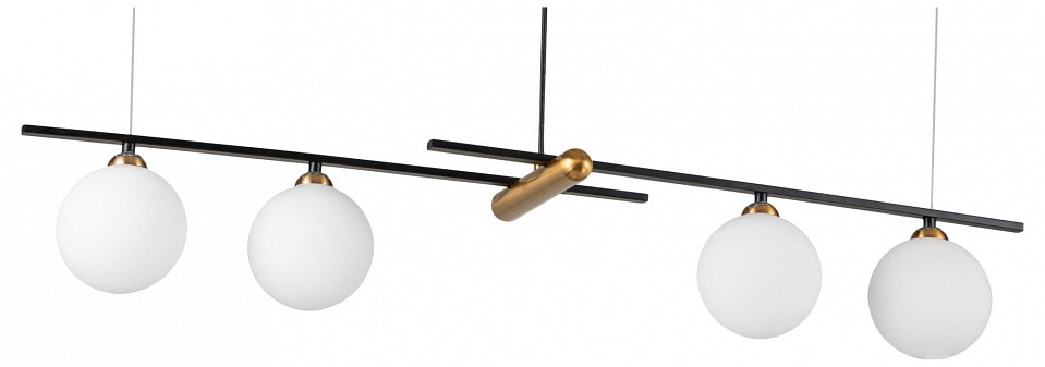 С высотой всего 190 мм и весом 2.64 кг, он не только компактный, но и легкий в установке. Светильник оснащен четырьмя плафонами, которые направлены вниз, обеспечивая равномерное освещение. Каждый плафон имеет сферическую форму, что добавляет изысканности и элегантности в дизайн.
