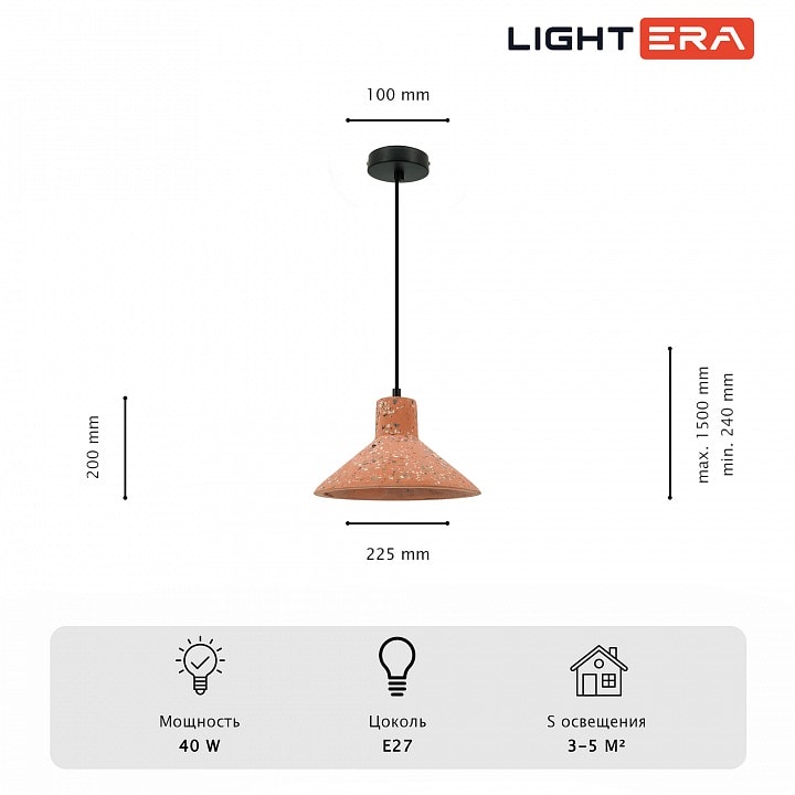 Светильник оснащен одним плафоном, который направляет свет вниз, обеспечивая равномерное освещение. Максимальная мощность лампы составляет 40 Вт, а тип цоколя — E27, что позволяет использовать лампы накаливания. Обратите внимание, что лампы в комплект не входят, что дает вам возможность выбрать освещение по своему вкусу.